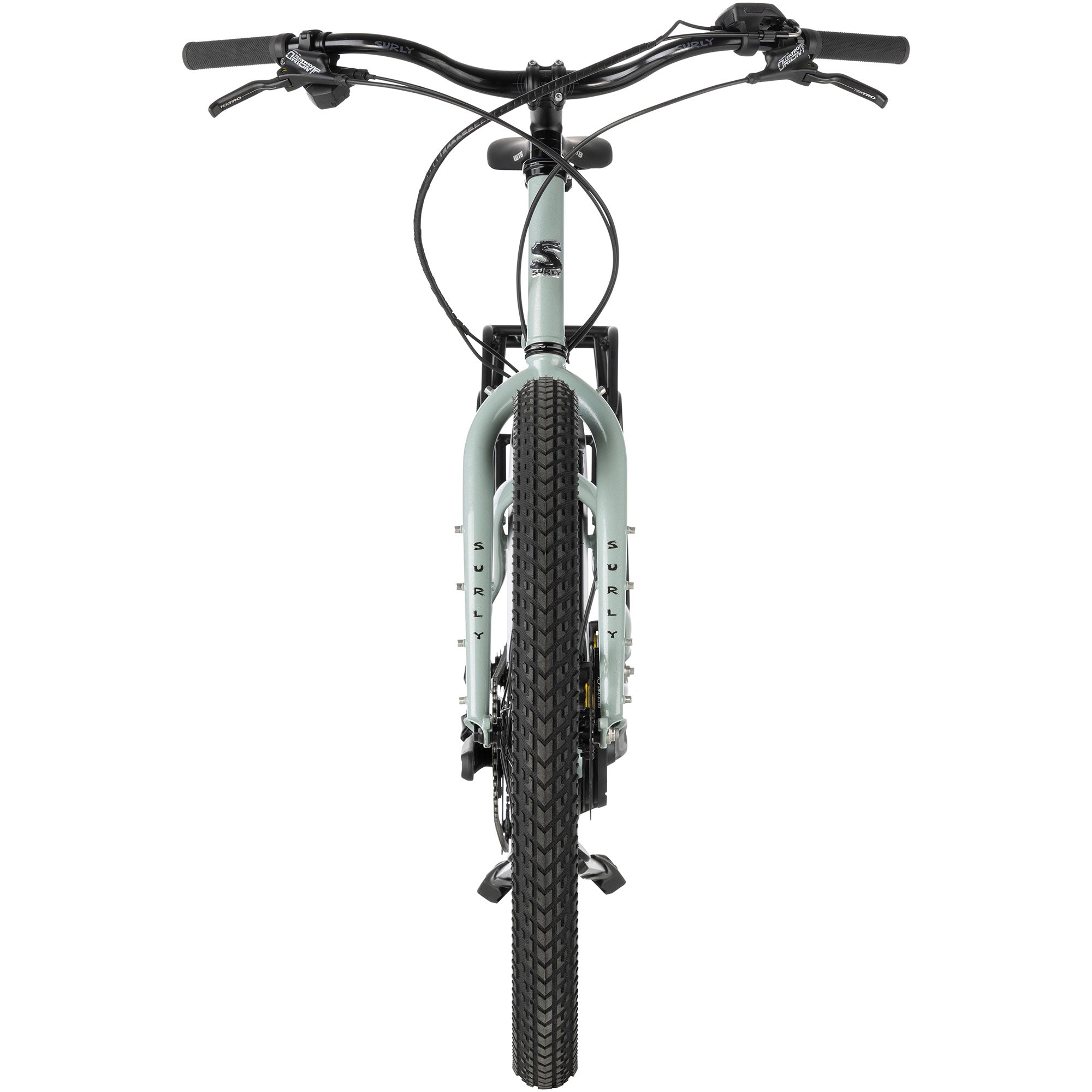 Comfortable and compliant under load, Skid Loader also enjoys cutting loose without cargo. Engineered to ride and feel like a regular bike, its 27.5” wheel platform provides abundant tire options you don’t get from cargo bikes rolling on smaller wheels. And because it’s a Surly, we gave it ample tire clearance and built it for commutes that go from bus stop to bandit trail. We also gave all three frame sizes adequate standover and a dropper post to fit riders of assorted shapes and sizes. Furnished with useful accessory barnacles and internal routing for just about everything, Skid Loader’s scaled-down and feature-packed cargo frame removes the roadblocks between you and riding whenever the hell you want.
