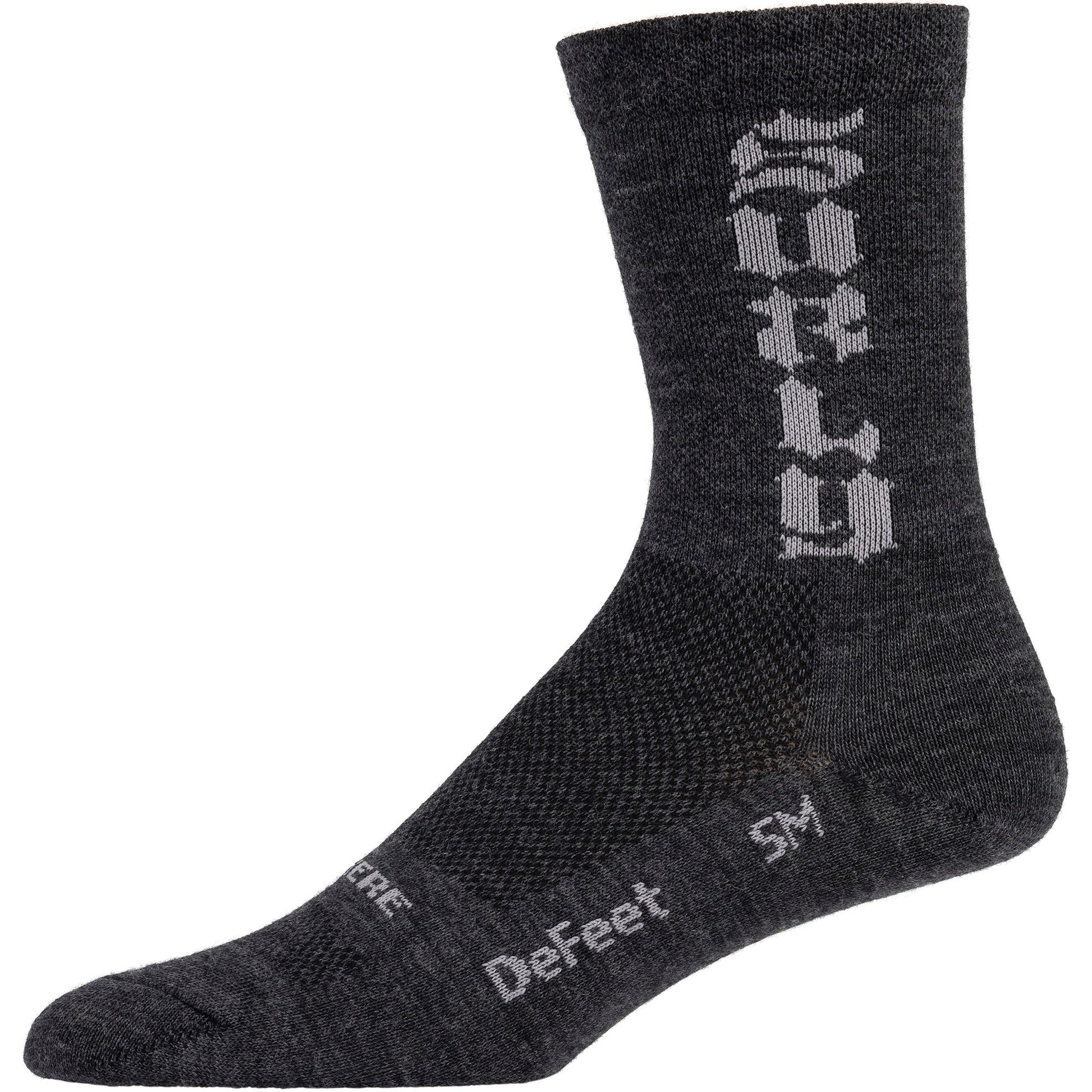 As you must know by now, wool resists odor. We have found that is a good feature in a sock. They also wick and insulate better than cotton or all synthetic, so you can wear them comfortably in a pretty wide range of climates. Surly Socks are made by DeFeet. They are Merino wool, with a small percentage of synthetic for increased durability. These ones here are 5” tall. Each design comes in four sizes so pretty much everyone should find one that fits.