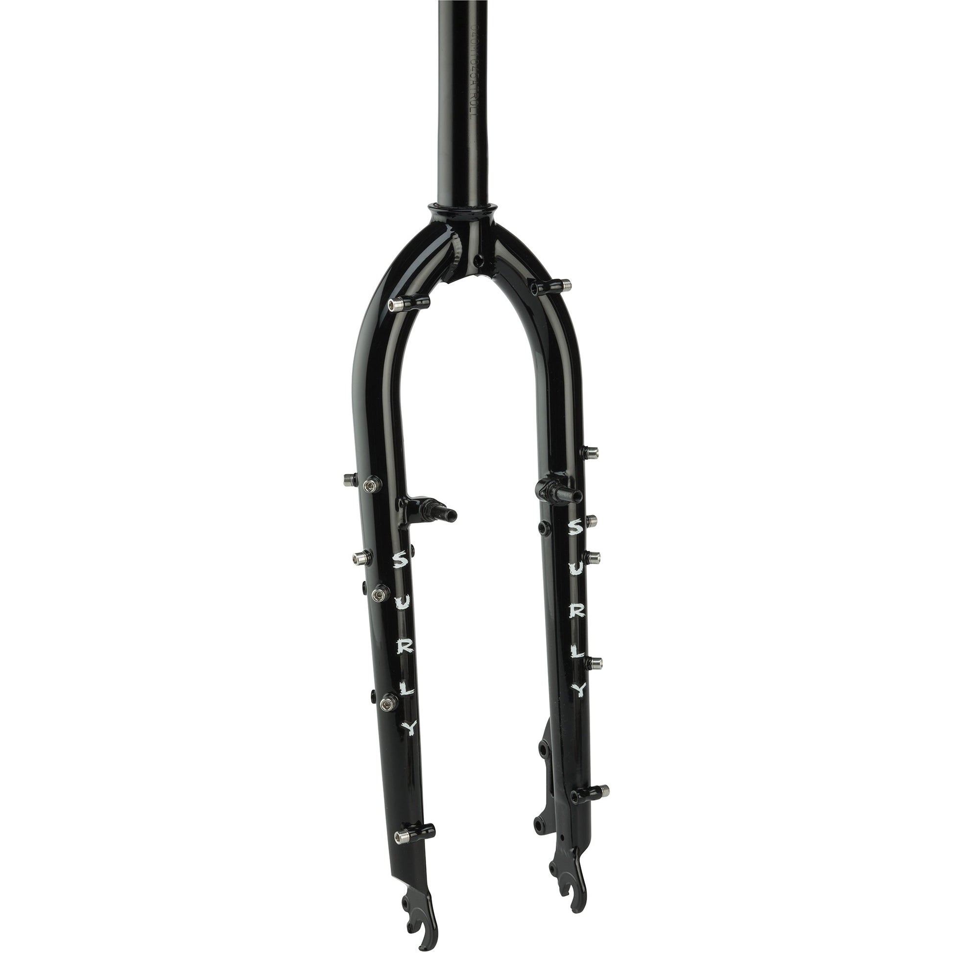 The Troll Fork is just like the one that comes with our Troll frame: a 26˝ wheeled, fully-geared utility bruiser and cruiser. Like all our forks, it’s constructed of Chromoly steel. It sports removable rim brake pivots as well as a 51mm disc caliper mount. It features accoutrements for racks, fenders and various Three-Pack Mount accessories.
